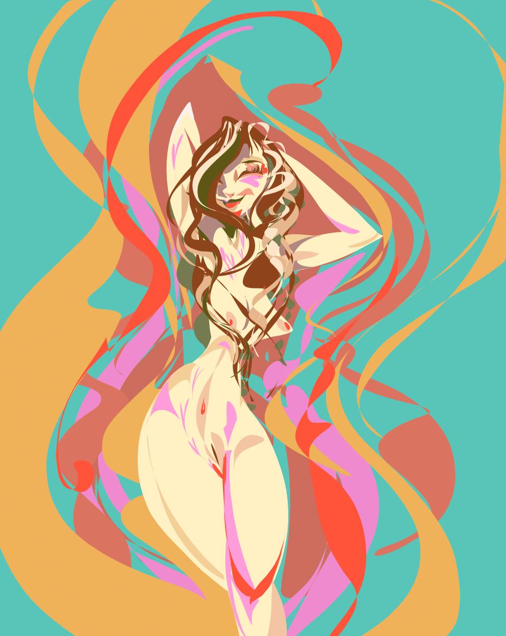 Colourful abstract naked dancing lady